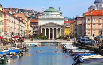 Situated at the crossroads of Latin, Slavic and Germanic cultures, Trieste invites visitors to discover new palaces, piazzas and cathedrals around every corner. Along the canal, the gilded Serbian Orthodox Church of San Spiridione is juxtaposed with the neoclassical Catholic Church of Sant’Antonio Nuovo. A walk along the harbor takes you to Trieste’s majestic main square, Piazza dell’Unità d’Italia, and on to the Museo Revoltella, the opulent palace of a wealthy baron. Not to be missed is the Castello di Miramare, Archduke Maximilian’s gleaming castle situated on a rocky promontory north of the city.